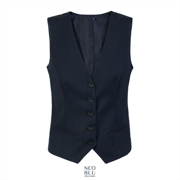 Dames gilet met 5 knopen die onder een pak gedragen kan worden. Bevat 2 paspelzakken aan de voorkant. Verstelbare band aan de achterkant met metalen gesp. Combinatie: NEO031655 Marius Women en NEO03163 Gabin Women en NEO03173 Arthur Women