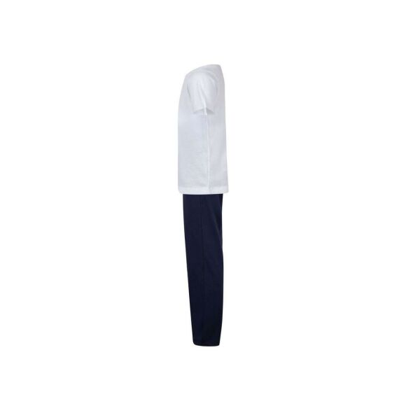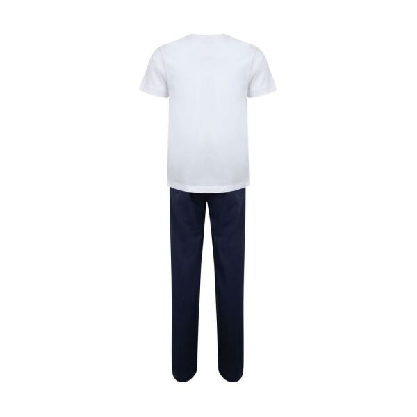 Set: white t-shirt and contrasting pants. Double seams at the waist of the t-shirt. Elasticated trouser waist with drawstring. Sold in a contrasting bag with drawstring. Detachable label. Set: white t-shirt and contrasting pants. Double seams at the waist of the t-shirt. Elasticated trouser waist with drawstring. Sold in a contrasting bag with drawstring. Detachable label.
